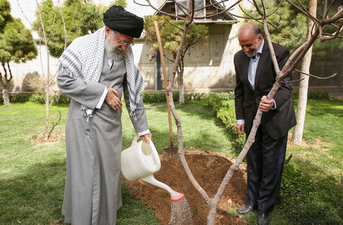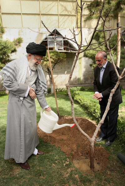 به گزارش پایگاه اطلاع رسانی دفتر مقام معظم رهبری، حضرت آیت الله خامنهای پس از غرس نهال، در سخنانی روز و مراسم درختکاری را رسمی مبارک در سراسر کشور دانستند و با اشاره به اهمیت و برکات گیاهان، جنگل ها و مراتع در حفظ هوا و آب، زیبا و تماشایی کردن فضای زندگی و تولید محصولات مفید برای بشر، خطاب به مسئولان تأکید کردند: مسئولان باید مانع از بین رفتن درختان موجود در شهرها شوند.