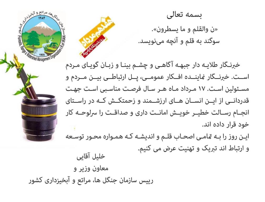تبریک رئیس سازمان جنگل ها به مناسبت روز خبرنگار