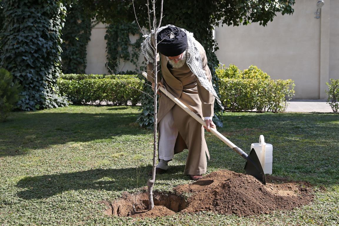 این درختکاریِ ما -که مثلاً دو اصله درختِ ثمربخش را، دو اصله درختِ میوه را در اینجا غرس میکنیم- بهعنوانِ یک نماد است. ما میخواهیم که غرس درخت، حفظ درخت و اهمّیّت دادن به درخت و گیاه و پوشش گیاهی، در کشور بهصورت یک عرف عمومی و یک فرهنگ عمومی دربیاید.