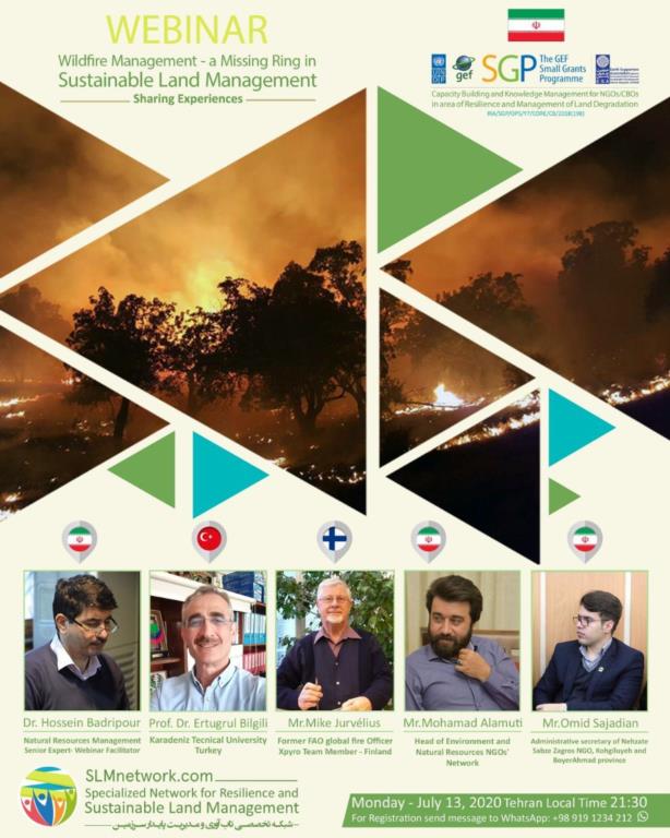 این تسهیلگر وبینار همچنین از سخنرانی آقای مایک یورولیوس کارشناس اسبق بخش حریق در فائو از کشور فنلاند با موضوع مدیریت مردم محور حریق و آقای ارتوگرول بیلگیلی مدرس بین المللی از دانشگاه کارادنیز ترکیه در زمینه مدیریت حریق خبر داد.