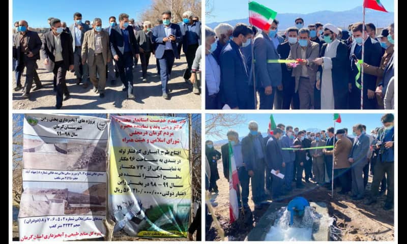 پروژه های آبخیزداری بخش راین با حضور دکتر زینی وند استاندار کرمان، دکتر پورابراهیمی نماینده کرمان در مجلس شورای اسلامی و فرماندار کرمان افتتاح گردید.