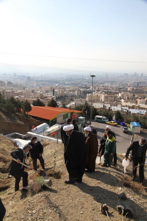 بر اساس این گزارش، روحانیون و کارکنان سرانجام با رعایت پروتکل بهداشتی به یاد شهدا نهال کاشتند.