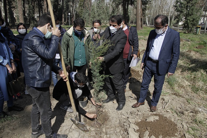 پایان بخش مراسم ششمین روز هفته منابعطبیعی در دانشکده منابعطبیعی دانشگاه تهران مراسم نهالکاری رییس سازمان جنگلها با دانشجویان رشته مهندسی بود. دانشجویان در جنگل سرو سیمین پردیس کشاورزی و منابع طبیعی دانشگاه تهران که سال گذشته به دلیل عوامل طبیعی آسیب دیده بود دهها اصله نهال به صورت نمادین تقدیم زمین کردند تا محیط دانشگاه رنگ سرسبزی و طراوت بر خود بگیرد.
