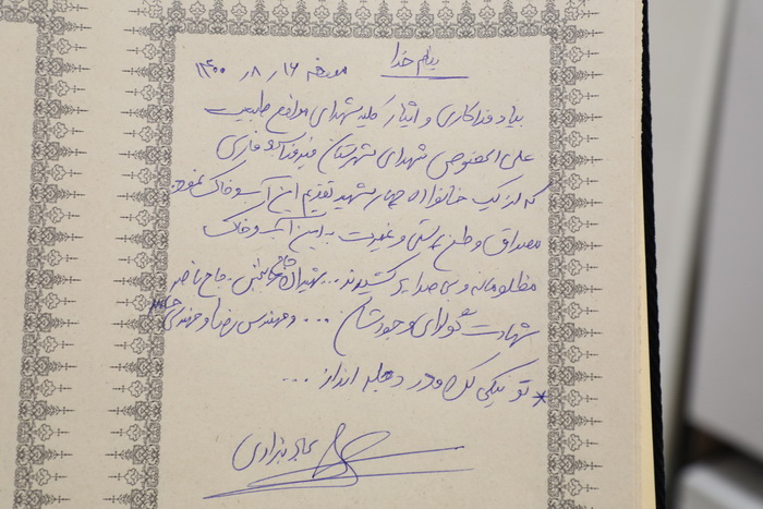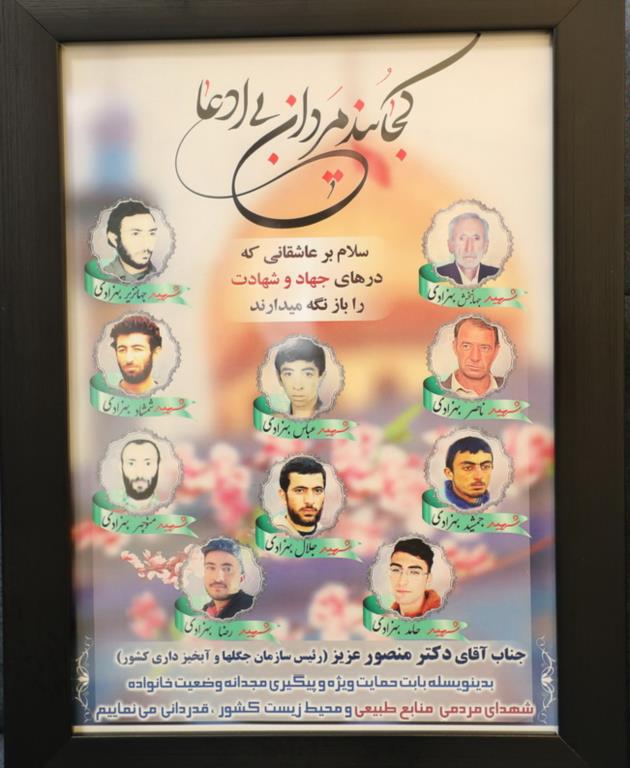 در راستای سرعت بخشی به حل مشکلات و دیدار چهره به چهره مردم و مسؤولین، تعدادی از مراجعین با دکتر مسعود منصور؛ رئیس سازمان جنگل ها، مراتع و آبخیزداری کشور ملاقات کردند. در این میان، سجاد بهزادی، از خانواده عشایری جان نثار طبیعت که در اثنای اطفای حریق جنگلهای منطقه هایقر فیروزآباد فارس چهار تن از آنها جان باختند ضمن تشکر از پیگیری و رسیدگی های دکتر منصور، تابلو تمثال شهدای اخیر و جنگ تحمیلی این خانواده و اظهار قدردانی خود را تقدیم موزه منابع طبیعی کشور کرد.