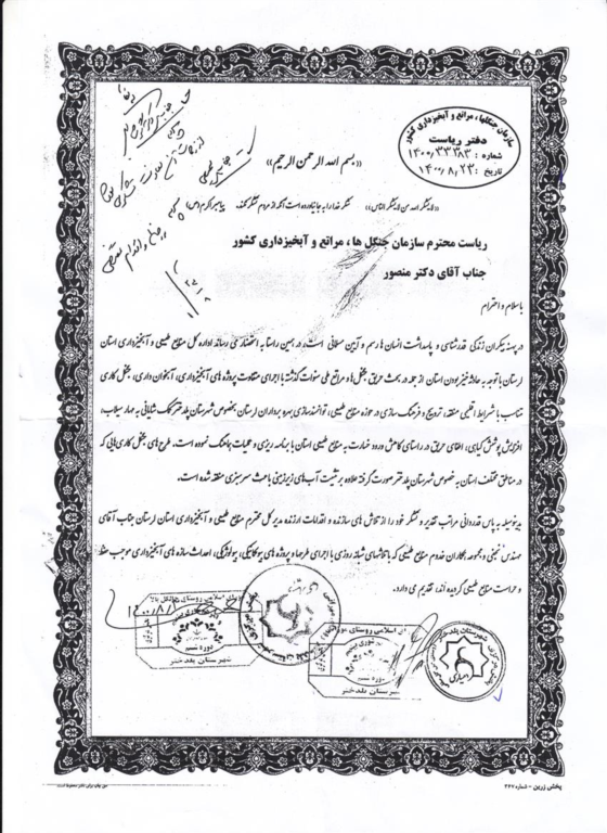 مسئولان شورای اسلامی و دهیاری های روستای شهرستان پلدختر از توابع استان لرستان از ریاست سازمان جنگل ها، مراتع و آبخیزداری کشور و مدیرکل منابع طبیعی و آبخیزداری استان لرستان در راستای اقدامات منابع طبیعی در حوزه های آبخیزداری، آبخوانداری، جنگل کاری، اطفای حریق و... تقدیر و تشکر کردند.