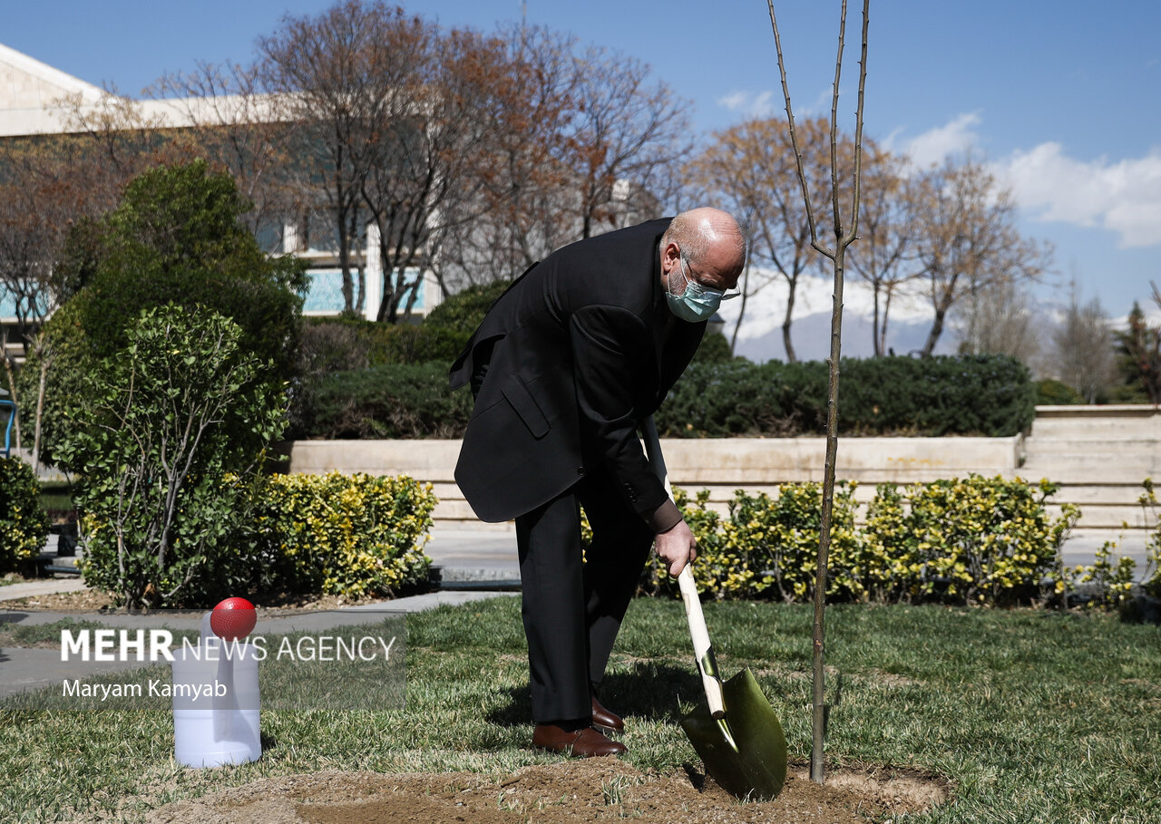 رئیس مجلس همزمان با روز درختکاری یک اصله نهال کاشت