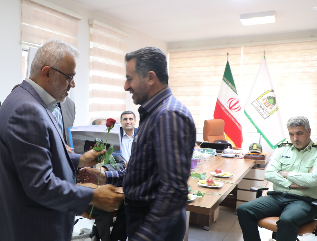نوبخت سرپرست سازمان منابع طبیعی سر انجام به پاس هفته فراجا و زحمات یگان در حفاظت و پاسداری از عرصههای منابع طبیعی شاخه گلی را تقدیم آنان کرد.