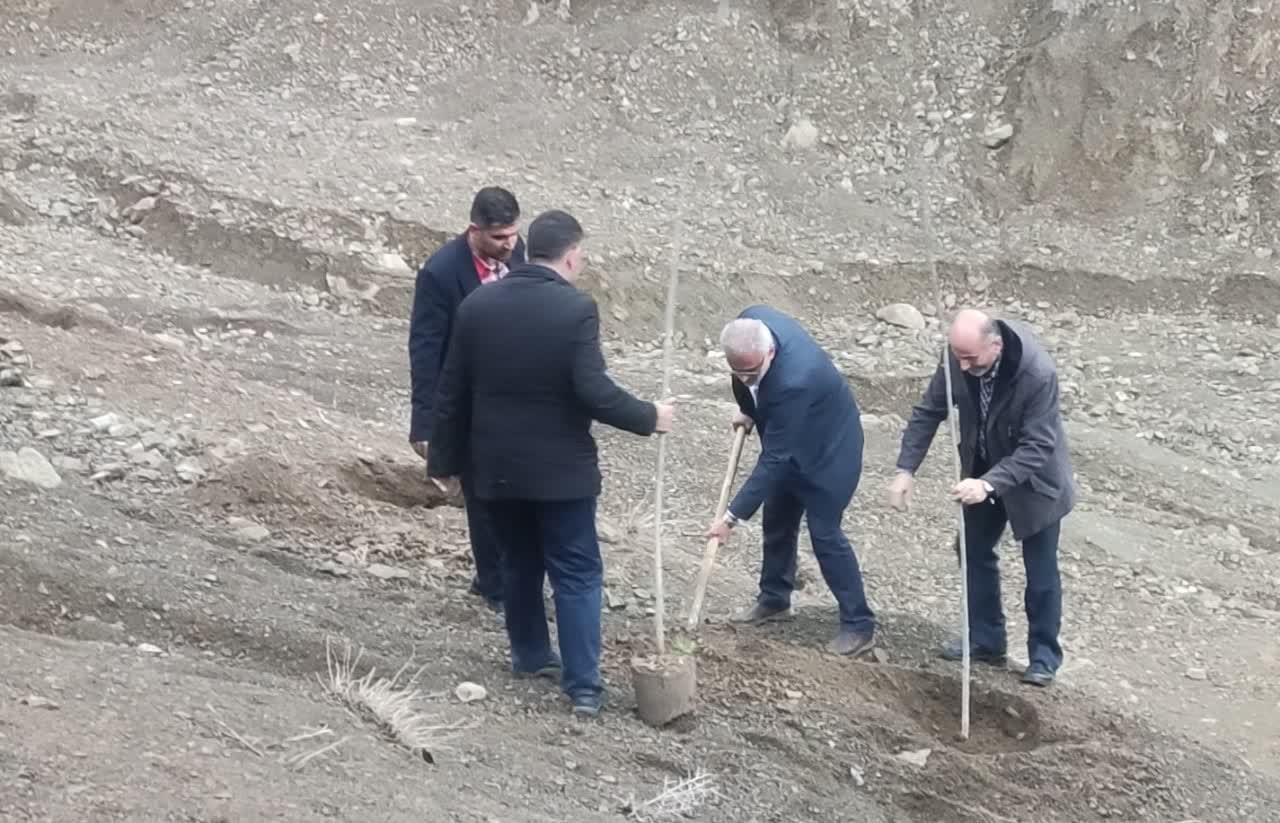 دکتر نوبخت سر انجام در محوطه اجرای طرح آبخیزداری در منطقه کن و سولقان سه اصله نهال زیتون و زبان گنجشک کاشت.