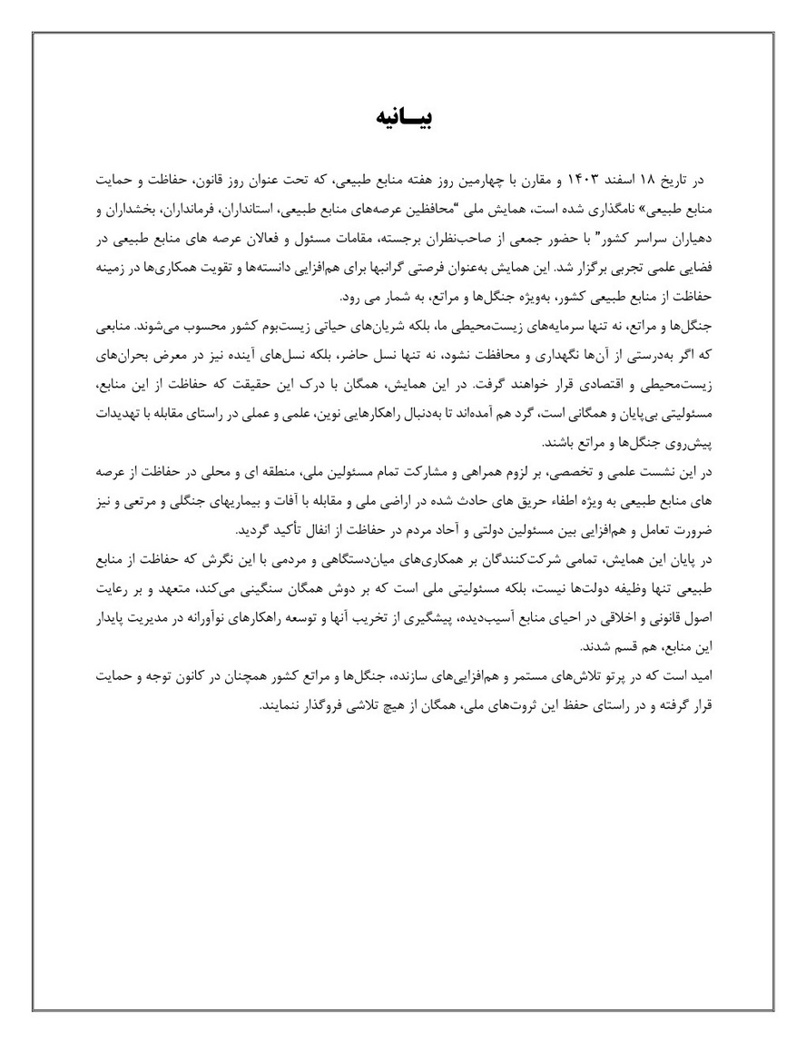 بیانیه معاونت حفاظت و امور اراضی به مناسبت روز قانون و حفاظت منابع طبیعی