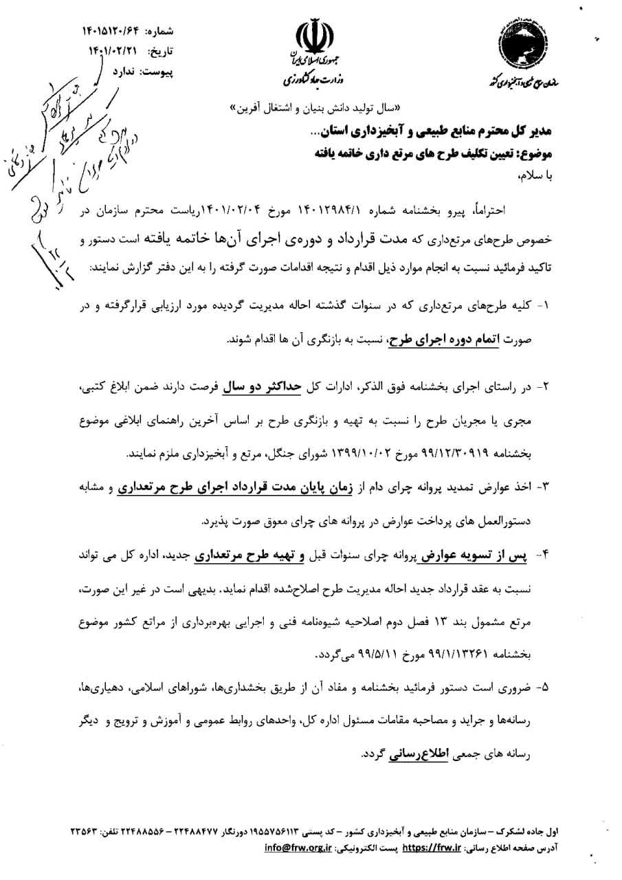 - بخشنامه تمدید مهلت قراردادهای خاتمه یافته طرح مرتعداری